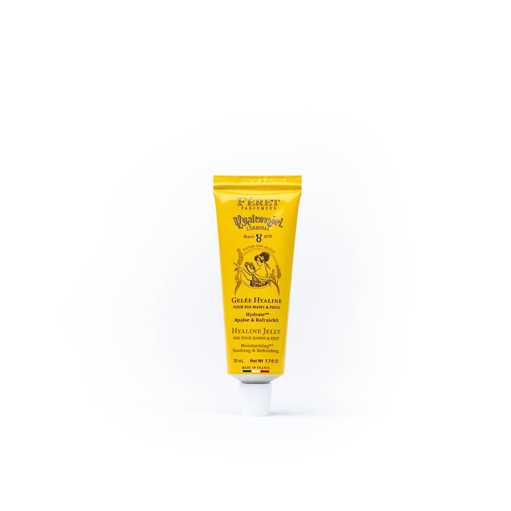 Hyaline jelly creates a transparent protective barrier that restores softness and suppleness to your hands and feet. As fall transitions into winter and your skin in now feeling more worn than ever, Hyalomiel gently exfoliates dead skin, promoting healing for dry hands and damaged heels—ideal for even the most sensitive skin. Treat your skin to the care it deserves in a chic and convenient 1.7 oz (50 ml) tube! Made In France