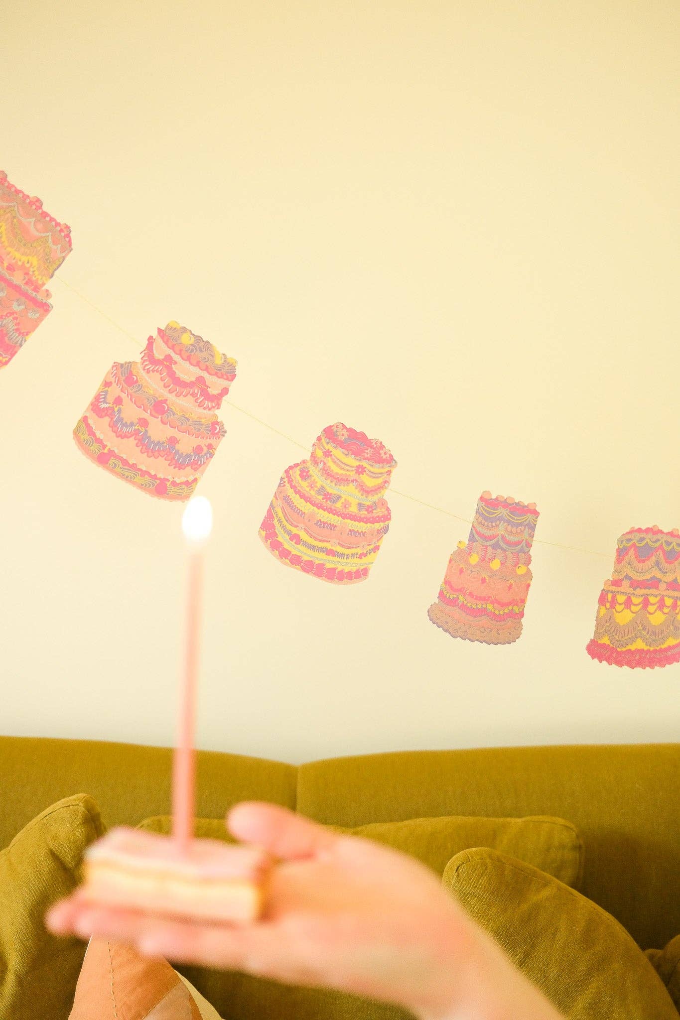 Three metres of frosted cake illustrations, trimmed with cherries and icing swirls, makes the perfect garland for birthdays, baby showers, or any fun celebrations.