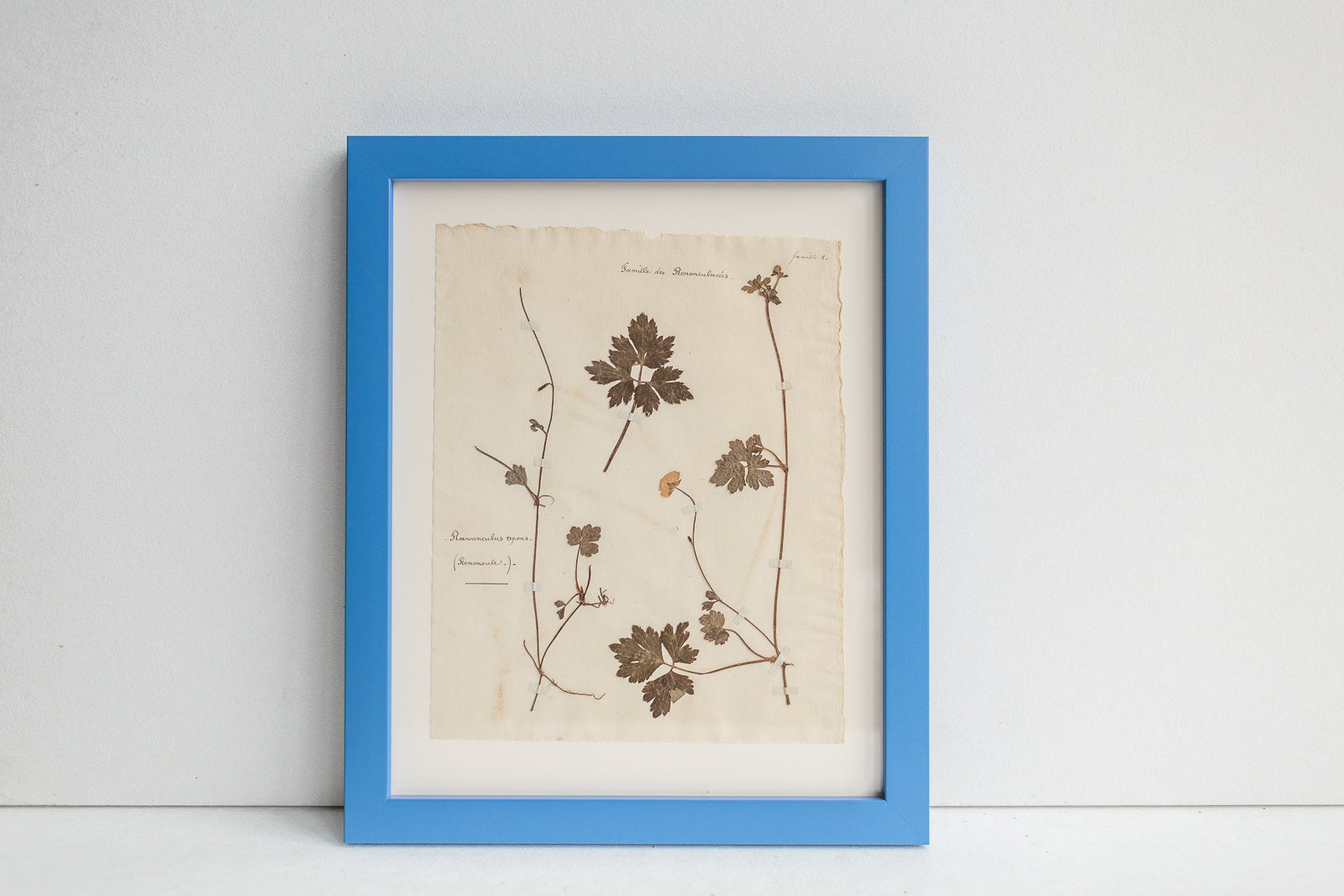 Pressed botanicals from 1800s France. Expertly framed by Mingo Gallery in Beverly, MA. Each frame measures 11 3/4” x 14 1/4.”