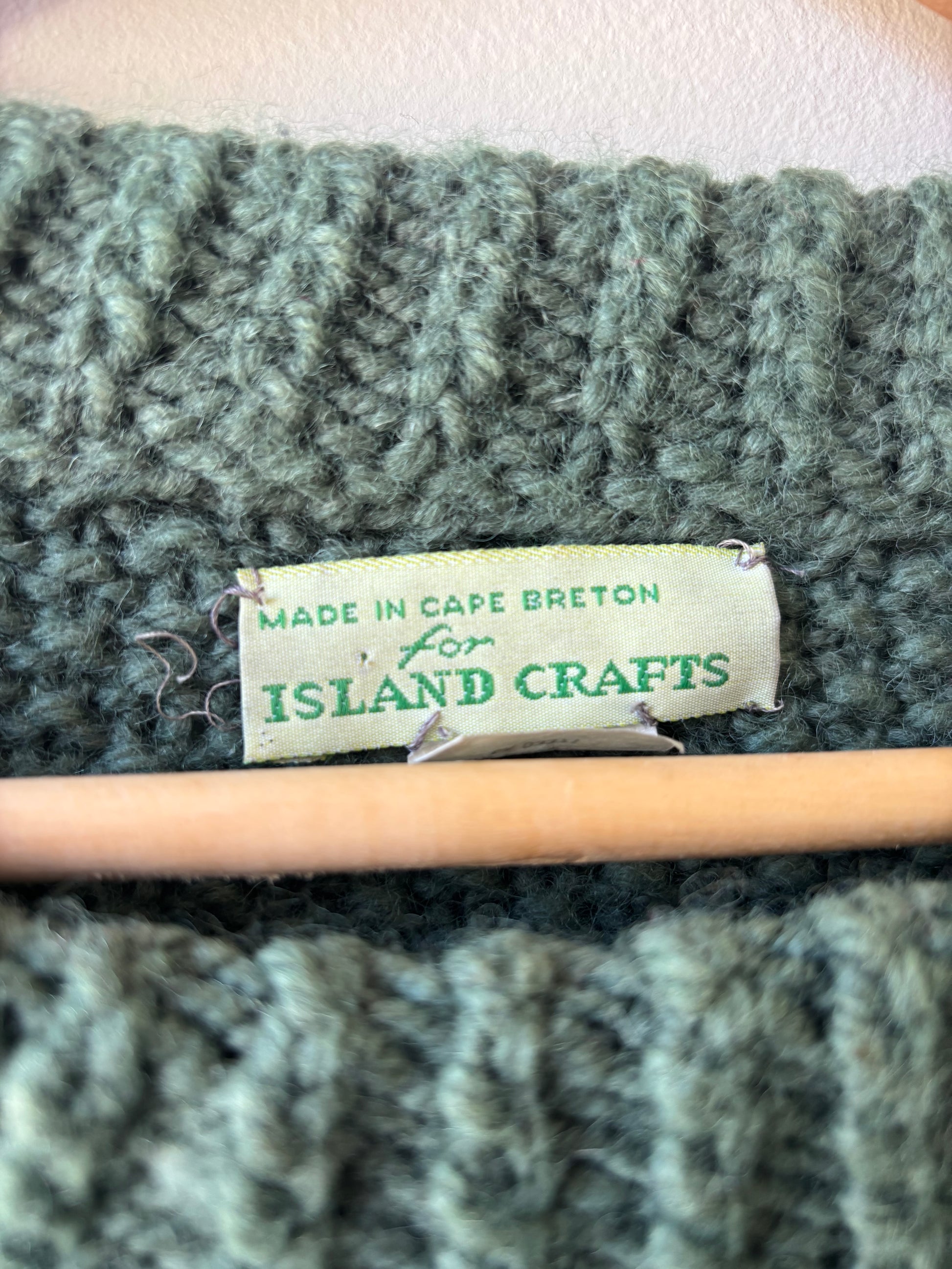 Vintage chunky-knit emerald green sweater. Made in Cape Breton for Island Crafts; no size marked but fits like a M/L.